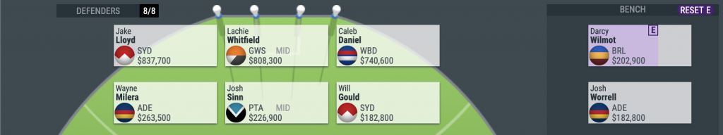 If you’ve been a Patreon or follower of the Coaches Panel for some years, then you’d be familiar with my thought process with premiums. First, get the player you believe is the best performer in the starting squad for the season. In the backline, I think that’s Jake Lloyd and Lachie Whitfield. At worst, they might drift to a low 90’s performer. But at best, they can excel weekly past 105 and have proven they are VC/C candidates. Caleb Daniel has some slight value to him, but in reality, he’s shown for the better part of three seasons that he’s a 90+ defender. Of all premiums on my side, he’s the one most likely to be changed early. But for a structure hold, it works fine. Wayne Milera is a stupid good value. The fact he’s cheaper than Jason Horne-Francis means there is zero risk even with a poor injury history. Josh Sinn, I believe, will see tons of footy for Port this season. He’s laser fast, makes good decisions with the ball, and adds a fresh dynamic to the Power. Gould/Worrell/Wilmont should all be pressing for games early, but they’re just placeholders at this stage in the preseason.
