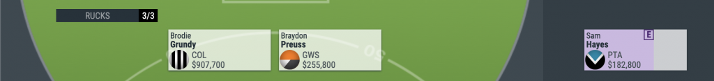 This line is possibly the most on-field vanilla side, but in reality, the value of Braydon Preuss at R2 is immense. When available, he’s the top ruck option at GWS and will be one of the most relevant players for DT. Brodie Grundy is the premium ruckman I trust the most for scoring, health and role consistency, so he’ll lead my ruck division into battle. While Sam Hayes could see plenty of games with the departure of Peter Ladhams.